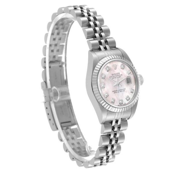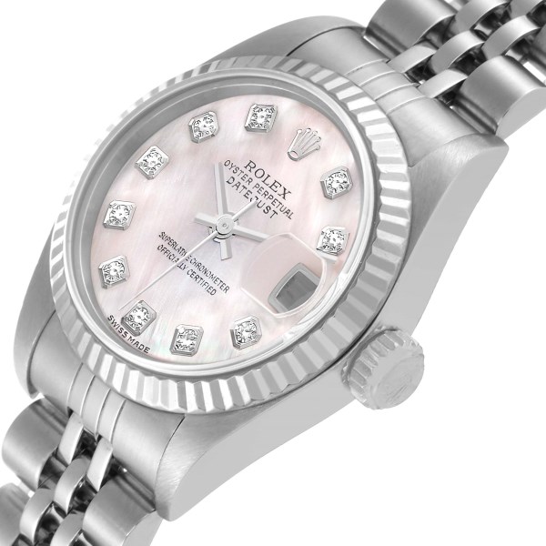 | Model Name: | Rolex Datejust Steel White Gold Mother of Pearl Diamond Ladies Watch 79174 Box Papers |