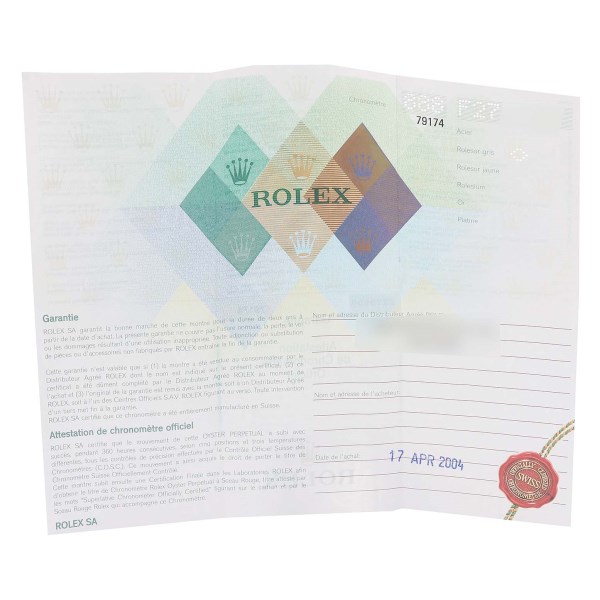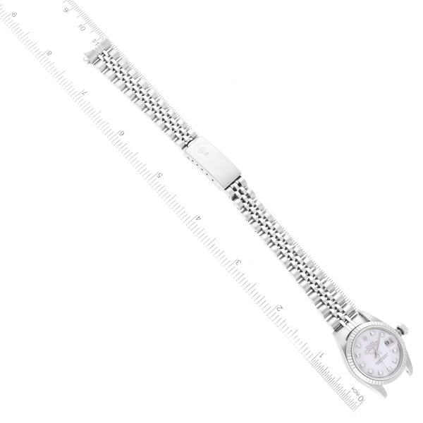| Dial: | Mother of pearl dial with original Rolex factory diamond hour markers. Date calendar at 3 o'clock aperture. |