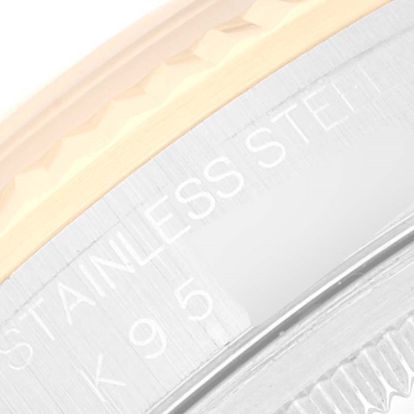 | Case: | Stainless steel case 36 mm in diameter. Rolex logo on an 18K yellow gold crown. |