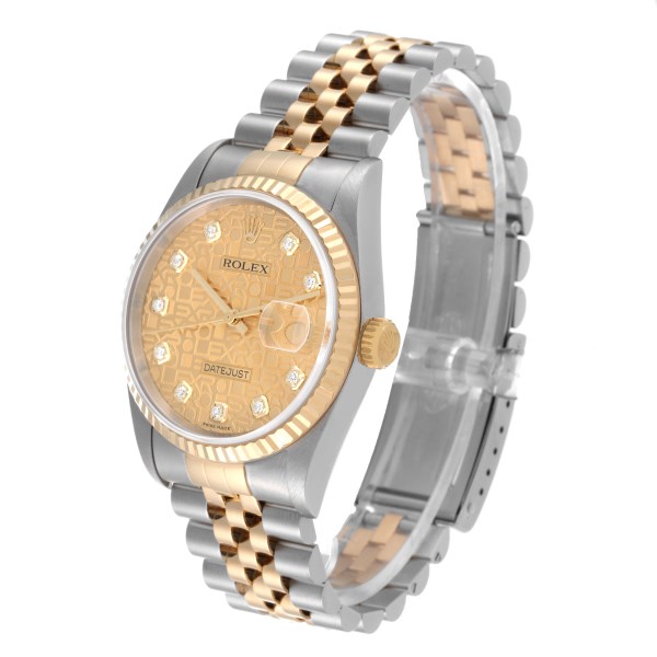 | Model Name: | Rolex Datejust Steel Yellow Gold Anniversary Diamond Dial Mens Watch 16233 |