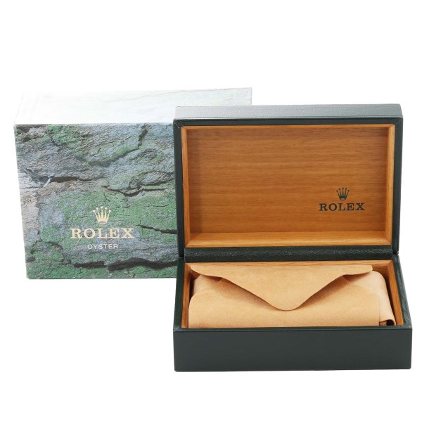 | Case: | Stainless steel case 36 mm in diameter. Rolex logo on an 18K yellow gold crown. |