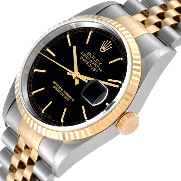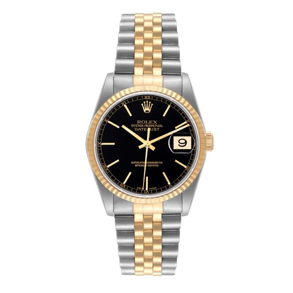 | Model Name: | Rolex Datejust Steel Yellow Gold Black Dial Mens Watch 16233 Box Papers |