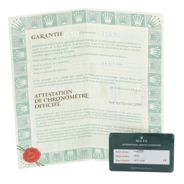 | Box & Papers: | Rolex box and papers. |