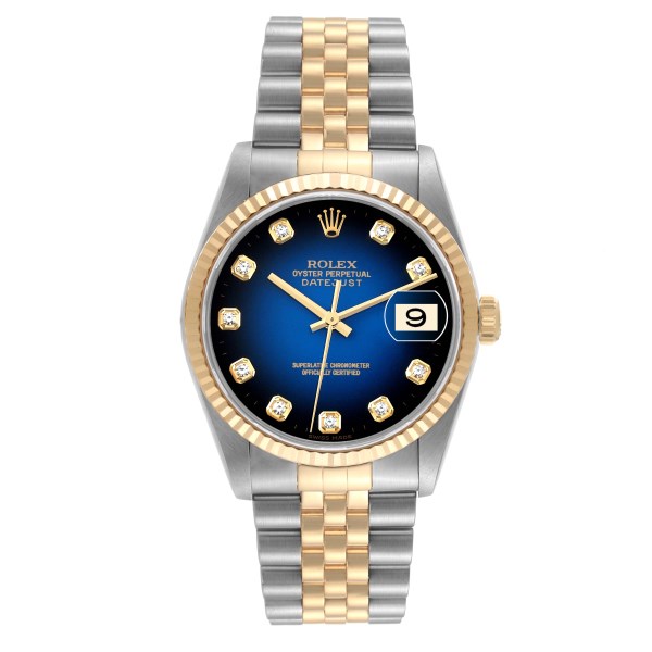 | Model Name: | Rolex Datejust Steel Yellow Gold Blue Vignette Diamond Dial Mens Watch 16233 |