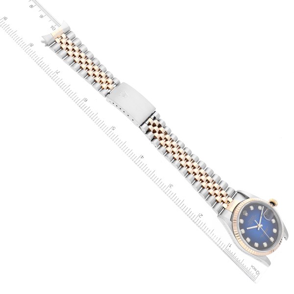 | Dial: | Blue vignette dial with original Rolex factory diamond hour markers. Date window at 3 o'clock aperture. |
