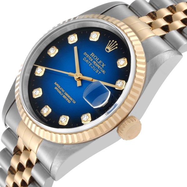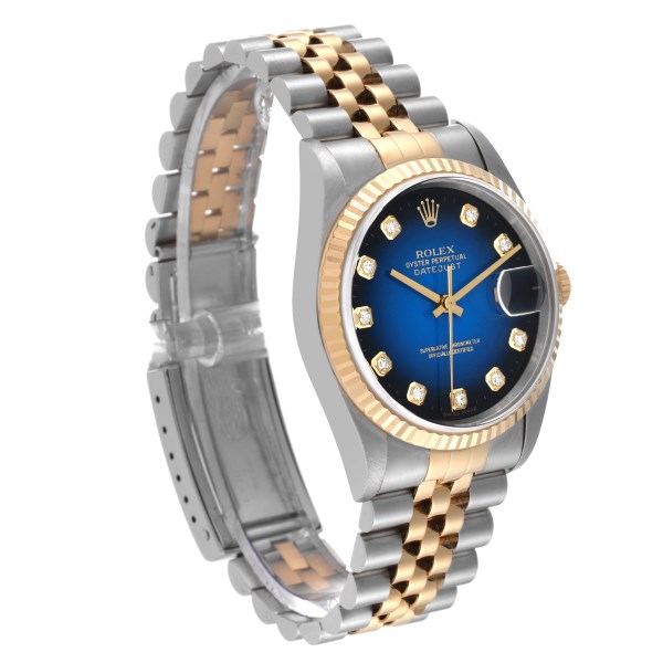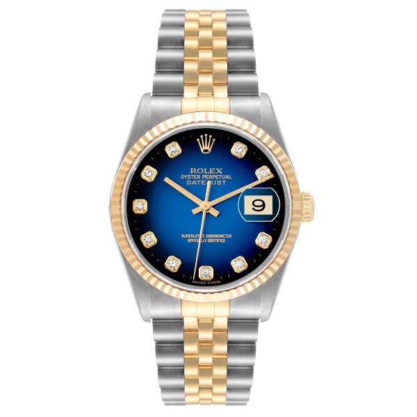 | Model Name: | Rolex Datejust Steel Yellow Gold Blue Vignette Diamond Dial Mens Watch 16233 |