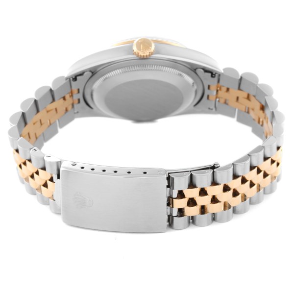 | Case: | Stainless steel case 36.0 mm in diameter. Rolex logo on an 18K yellow gold crown. |