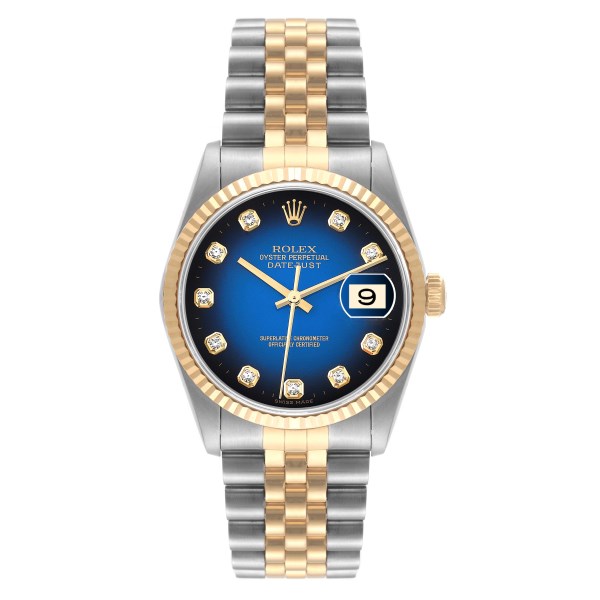 | Model Name: | Rolex Datejust Steel Yellow Gold Blue Vignette Diamond Dial Mens Watch 16233 |