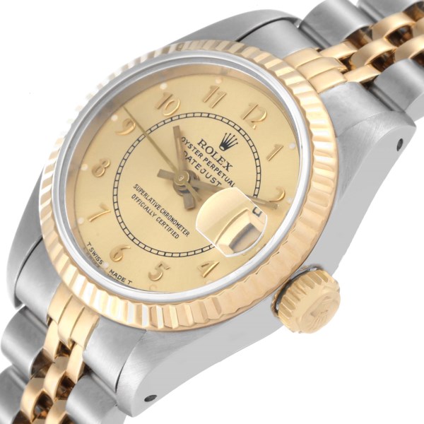| Model Name: | Rolex Datejust Steel Yellow Gold Champagne Bullseye Dial Ladies Watch 69173 |