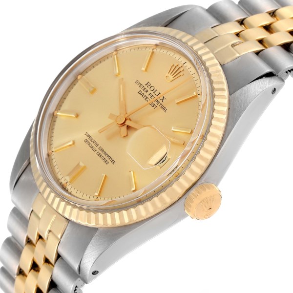 | Model Name: | Rolex Datejust Steel Yellow Gold Champagne Dial Vintage Mens Watch 1601 |