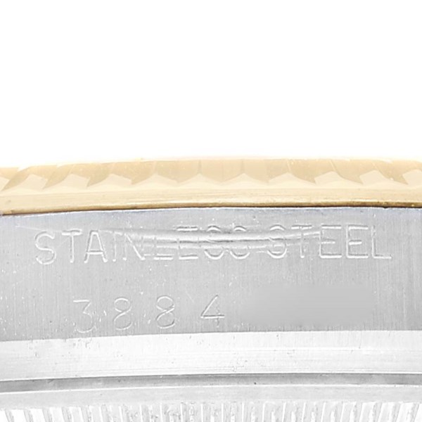 | Case: | Stainless steel case 36 mm in diameter. Rolex logo on an 18k yellow gold crown. |