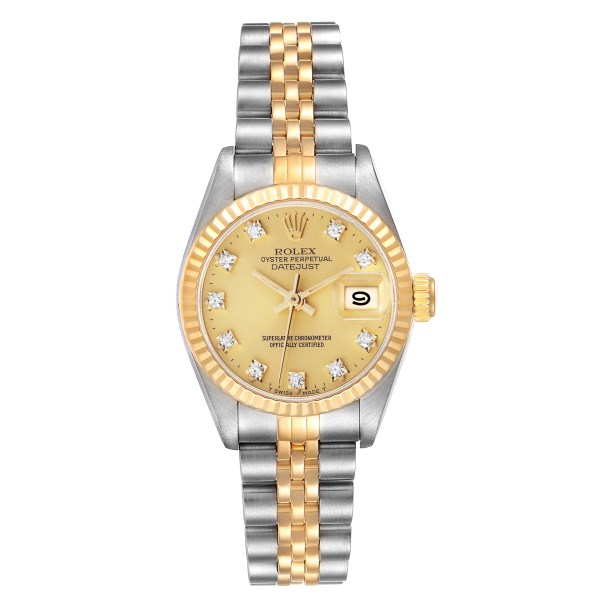 | Model Name: | Rolex Datejust Steel Yellow Gold Champagne Diamond Dial Ladies Watch 69173 |
