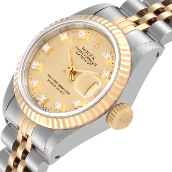 | Model Name: | Rolex Datejust Steel Yellow Gold Champagne Diamond Dial Ladies Watch 69173 |
