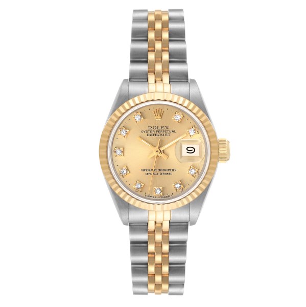 | Model Name: | Rolex Datejust Steel Yellow Gold Champagne Diamond Dial Ladies Watch 69173 |