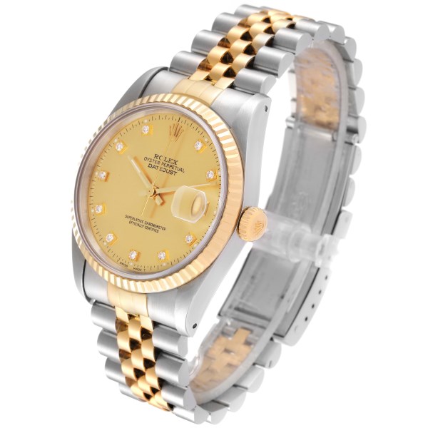 | Model Name: | Rolex Datejust Steel Yellow Gold Champagne Diamond Dial Mens Watch 16233 |