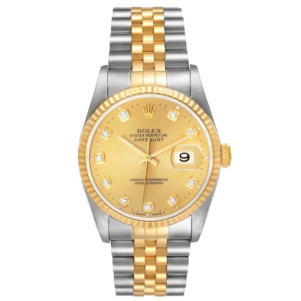 | Model Name: | Rolex Datejust Steel Yellow Gold Champagne Diamond Dial Mens Watch 16233 |