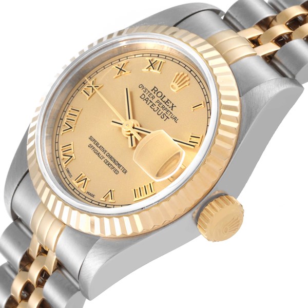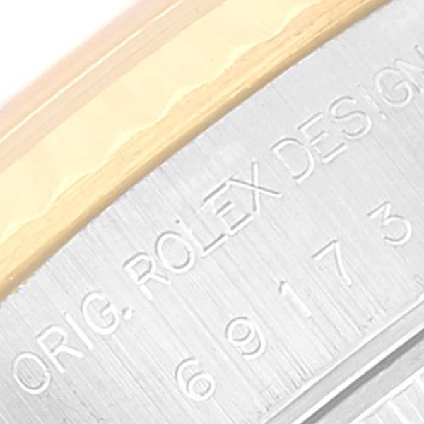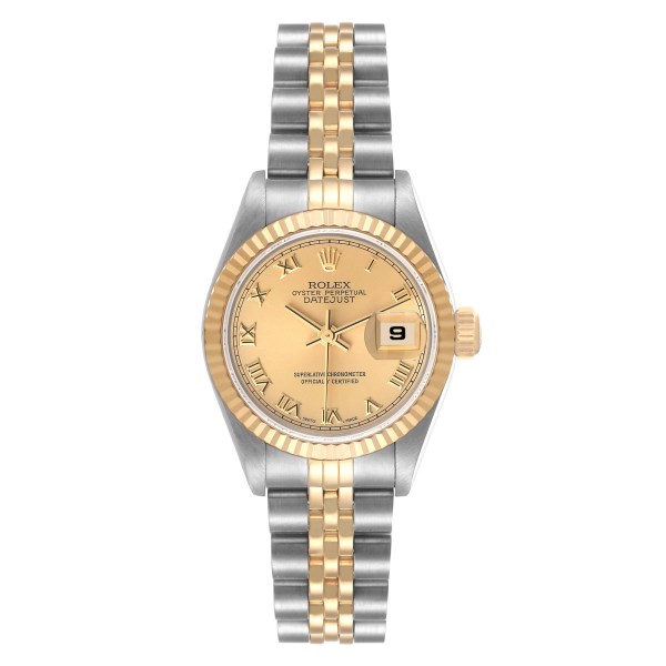 | Model Name: | Rolex Datejust Steel Yellow Gold Champagne Roman Dial Ladies Watch 69173 Papers |