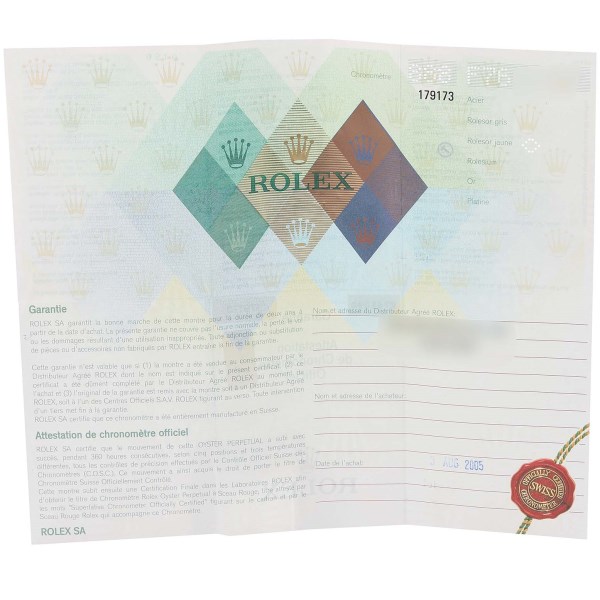 | Box & Papers: | Rolex box and papers. |