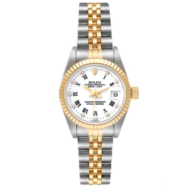 | Model Name: | Rolex Datejust Steel Yellow Gold Diamond Dial Ladies Watch 69173 Box Papers |