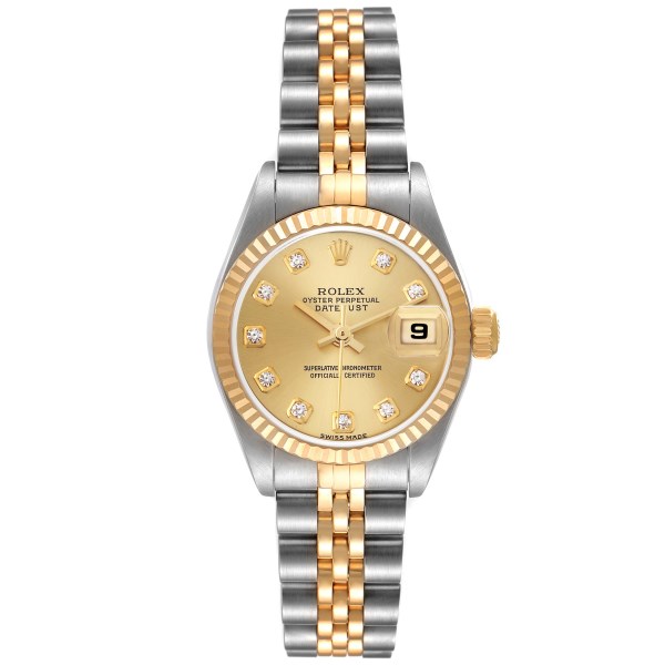 | Model Name: | Rolex Datejust Steel Yellow Gold Diamond Dial Ladies Watch 79173 Box Papers |
