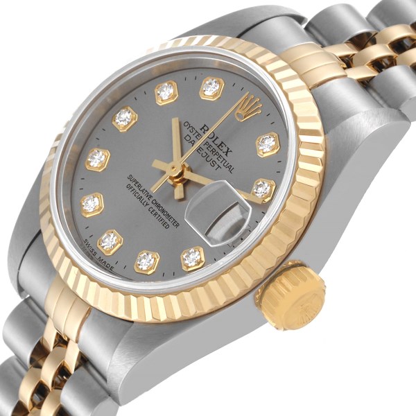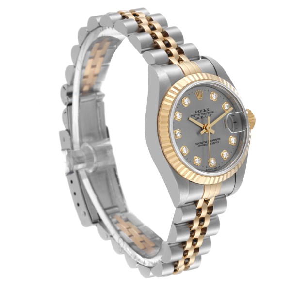 | Model Name: | Rolex Datejust Steel Yellow Gold Diamond Dial Ladies Watch 79173 Box Papers |