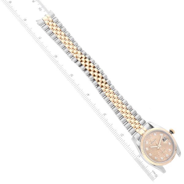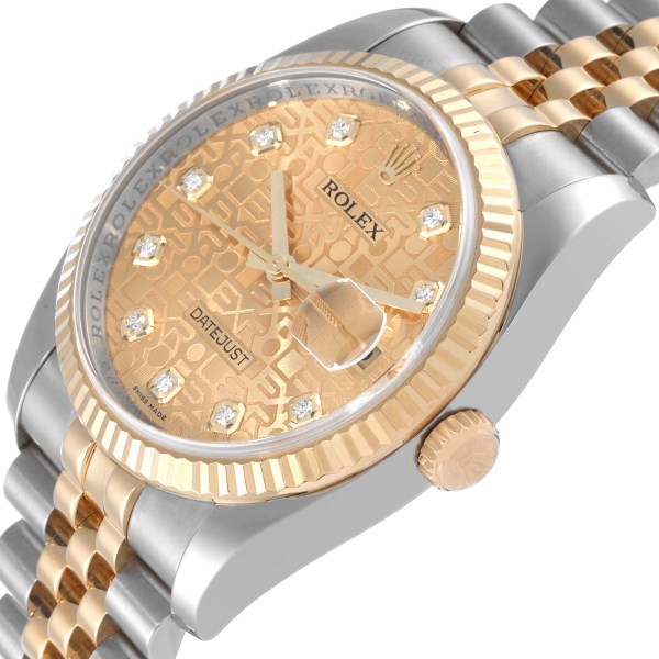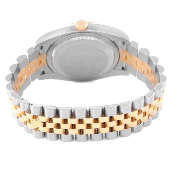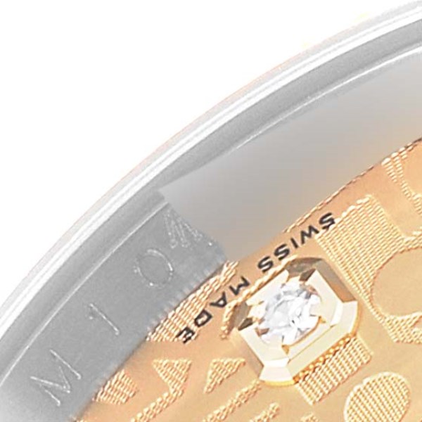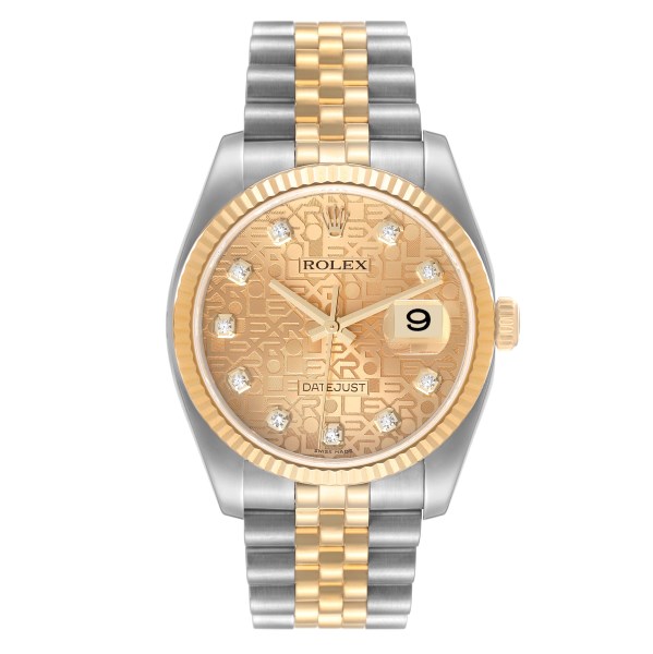 | Dial: | Champagne jubilee anniversary dial with original Rolex factory diamond hour markers. Date window at 3 o'clock aperture. |