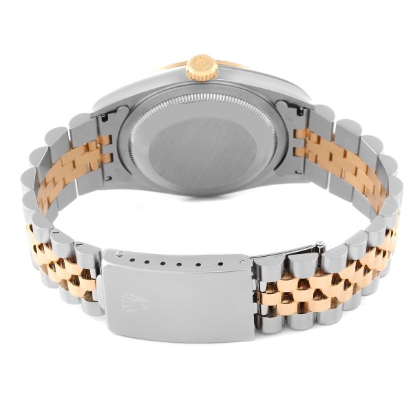 | Case: | Stainless steel case 36 mm in diameter. Rolex logo on an 18K yellow gold crown. |
