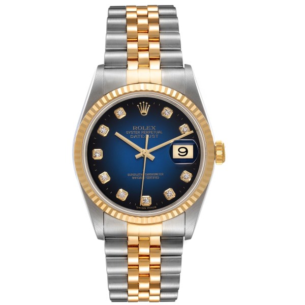 | Dial: | Blue vignette dial with original Rolex factory diamond hour markers. Date window at 3 o'clock aperture. |