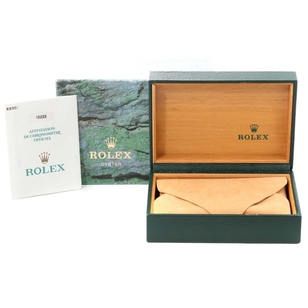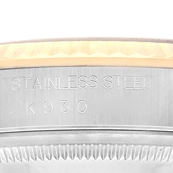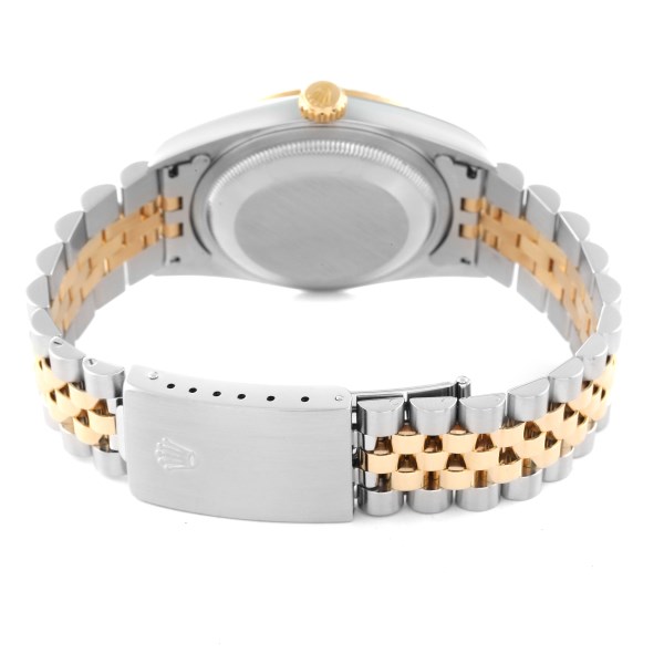 | Case: | Stainless steel case 36.0 mm in diameter. Rolex logo on an 18K yellow gold crown. |