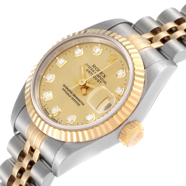 | Model Name: | Rolex Datejust Steel Yellow Gold Diamond Ladies Watch 69173 |