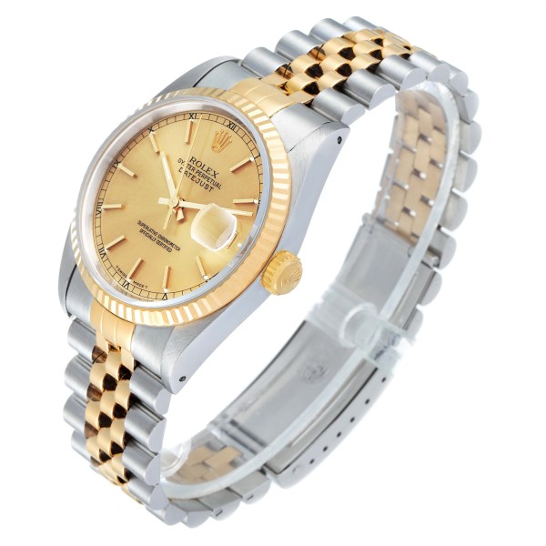| Model Name: | Rolex Datejust Steel Yellow Gold Fluted Bezel Mens Watch 16233 |