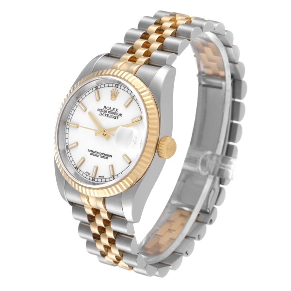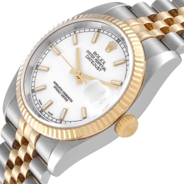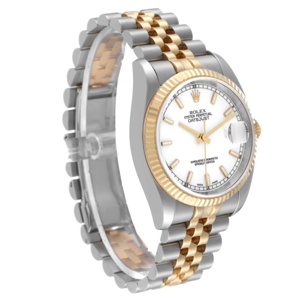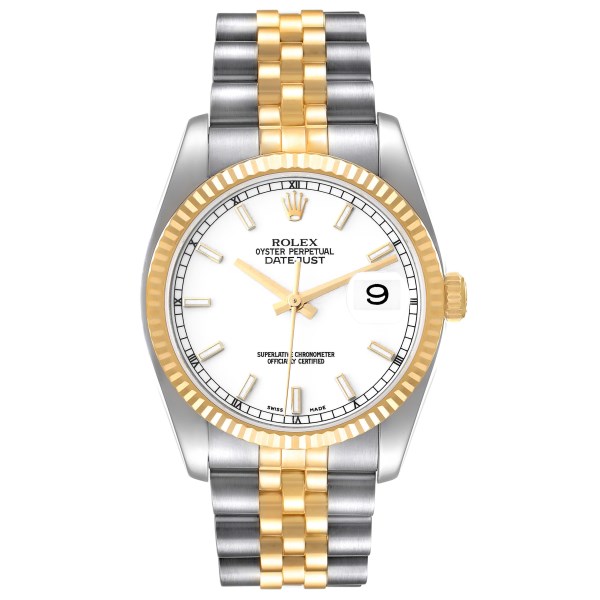 | Model Name: | Rolex Datejust Steel Yellow Gold Fluted Bezel White Dial Mens Watch 116233 |