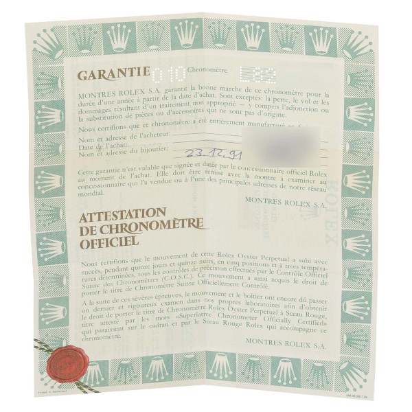 | Box & Papers: | Rolex box and papers. |