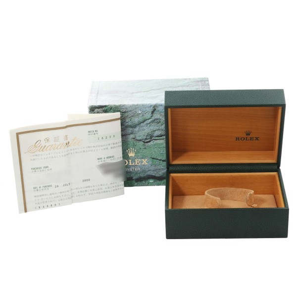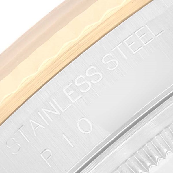 | Case: | Stainless steel case 36 mm in diameter. Rolex logo on an 18K yellow gold crown. |