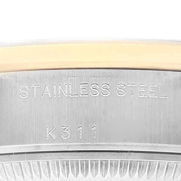 | Bracelet: | Stainless steel and 18k yellow gold oyster bracelet with a fold over clasp. Fits 6 3/4" wrist. |