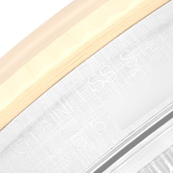 | Case: | Stainless steel case 36 mm in diameter. Rolex logo on an 18K yellow gold crown. |