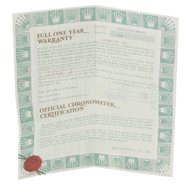 | Box & Papers: | Rolex box and papers. |