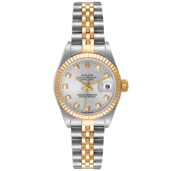 | Model Name: | Rolex Datejust Steel Yellow Gold Silver Diamond Dial Ladies Watch 79173 |