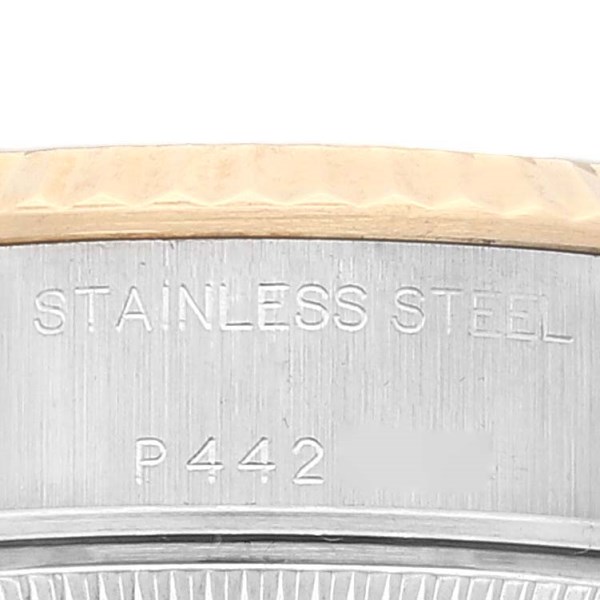 | Bracelet: | Stainless steel and 18k yellow gold jubilee bracelet with a fold over clasp. Fits 6 1/4" wrist. |