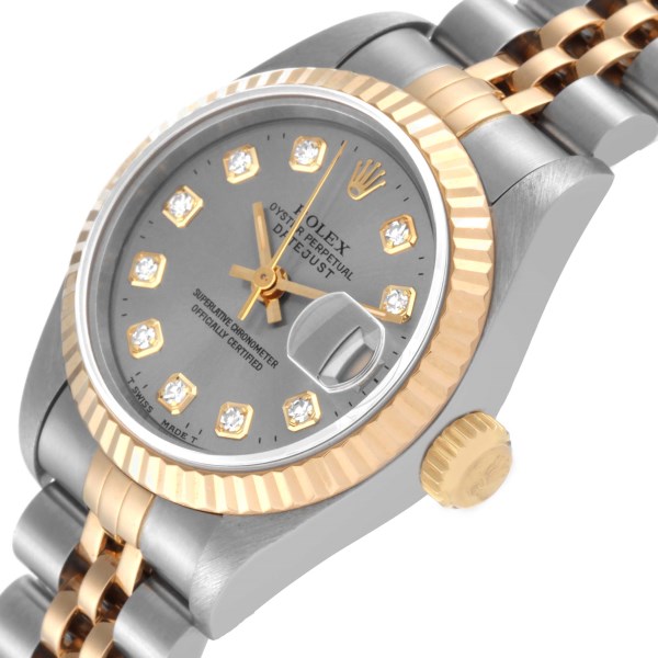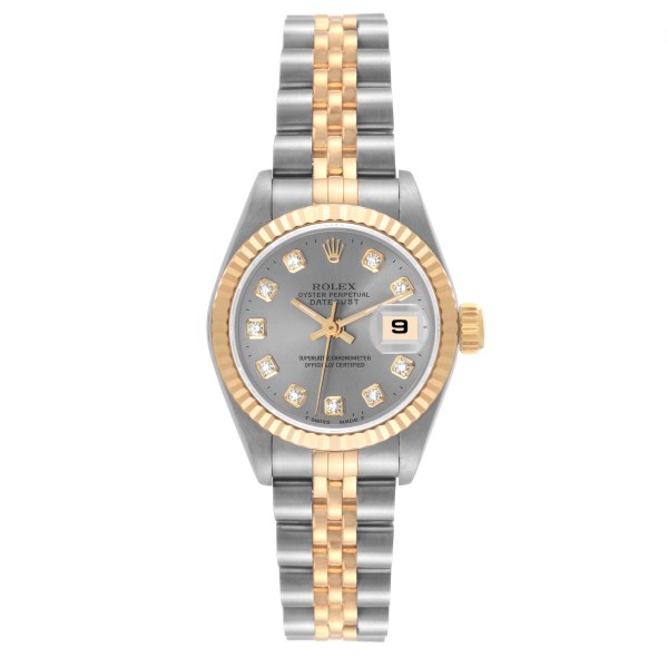 | Model Name: | Rolex Datejust Steel Yellow Gold Slate Diamond Dial Ladies Watch 69173 |