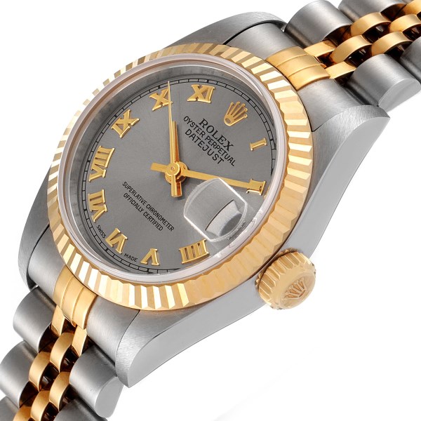 | Model Name: | Rolex Datejust Steel Yellow Gold Slate Grey Dial Ladies Watch 69173 Box Papers |