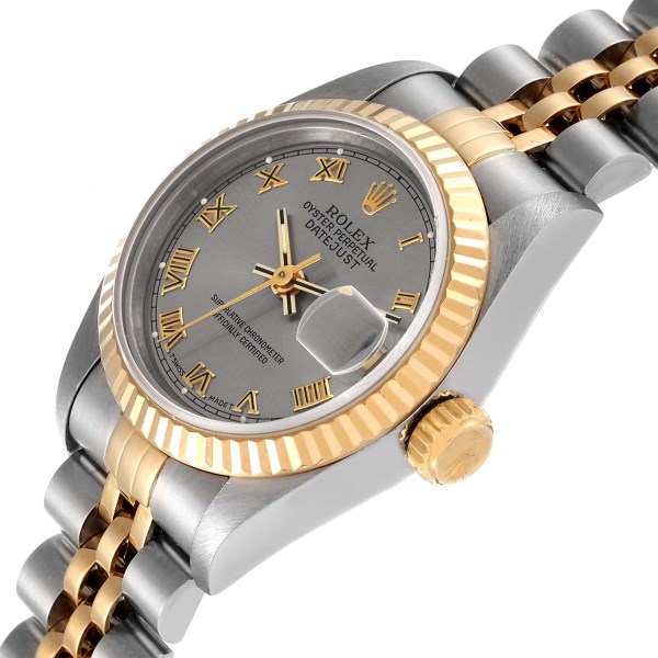 | Model Name: | Rolex Datejust Steel Yellow Gold Slate Roman Dial Ladies Watch 69173 |