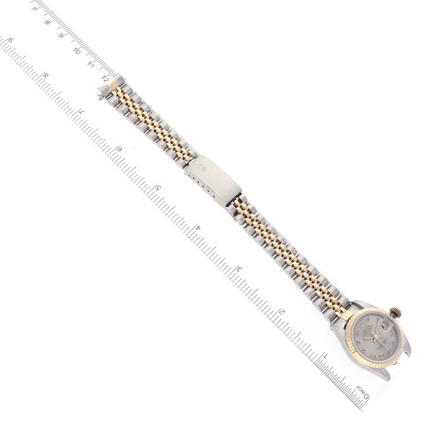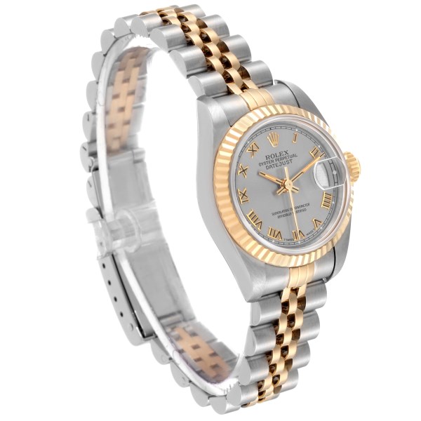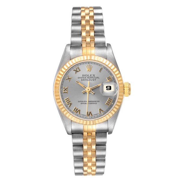 | Model Name: | Rolex Datejust Steel Yellow Gold Slate Roman Dial Ladies Watch 69173 |