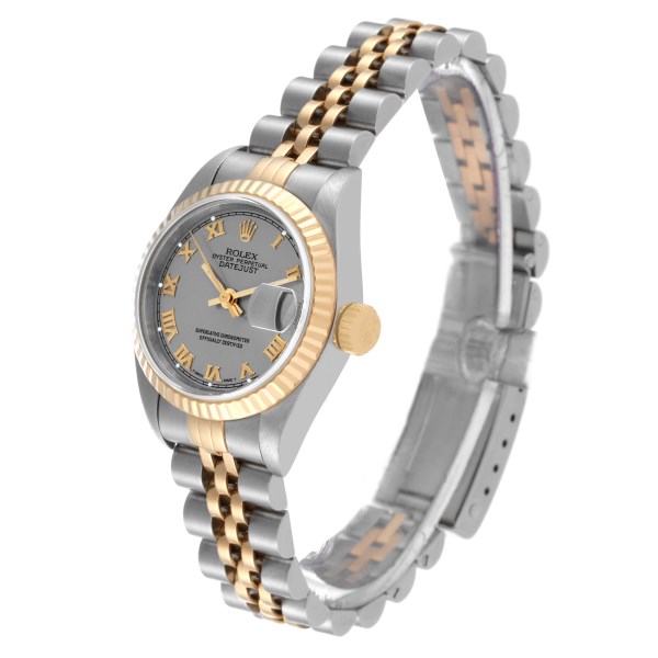 | Model Name: | Rolex Datejust Steel Yellow Gold Slate Roman Dial Ladies Watch 69173 |