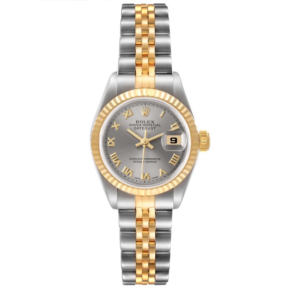 | Model Name: | Rolex Datejust Steel Yellow Gold Slate Roman Dial Ladies Watch 69173 |