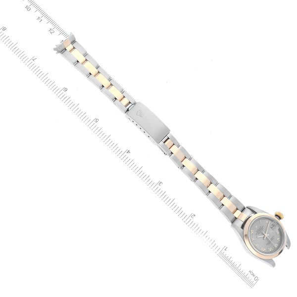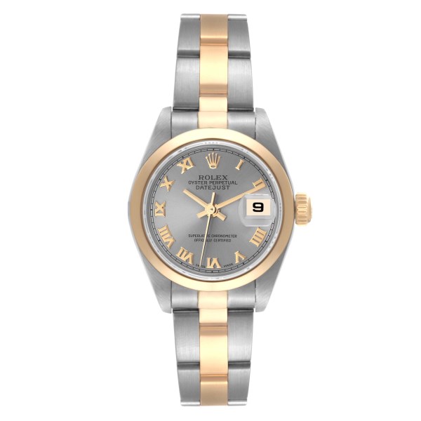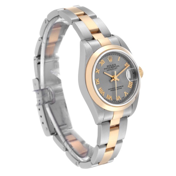 | Model Name: | Rolex Datejust Steel Yellow Gold Smooth Bezel Slate Dial Ladies Watch 79163 |