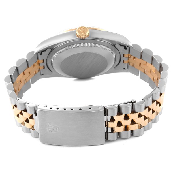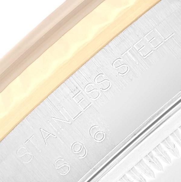 | Case: | Stainless steel case 36.0 mm in diameter. Rolex logo on an 18K yellow gold crown. |