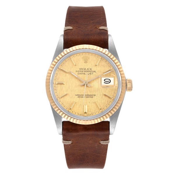 | Model Name: | Rolex Datejust Steel Yellow Gold Vintage Linen Dial Mens Watch 16013 |