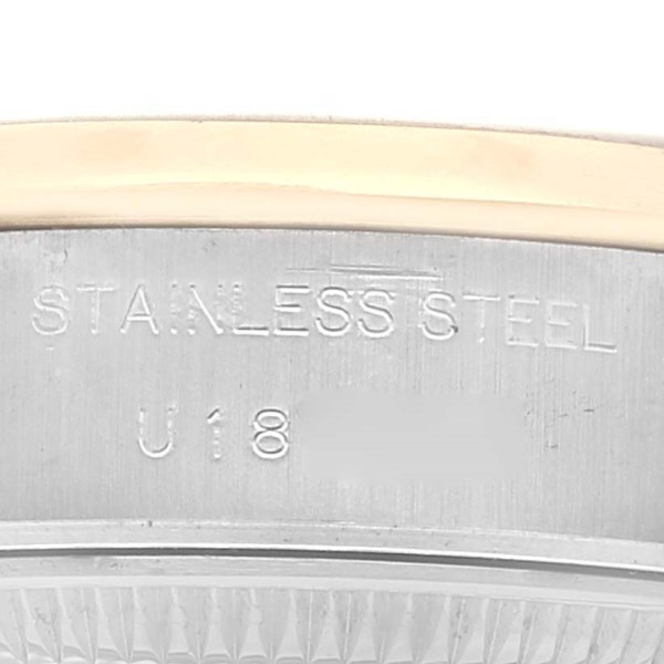 | Bracelet: | Stainless steel and 18k yellow gold oyster bracelet with fold over clasp. Fits 6 3/4" wrist. |