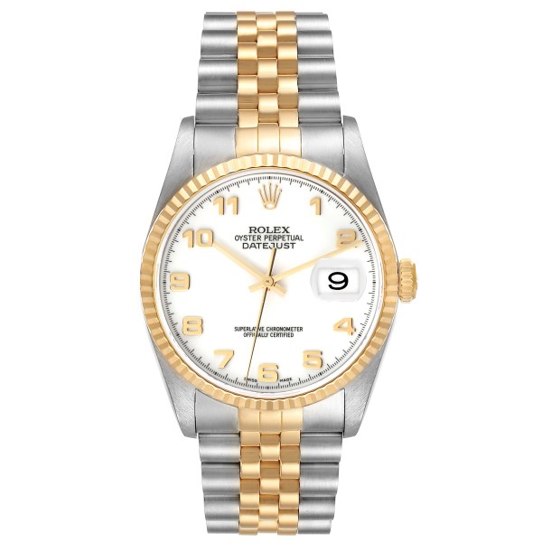 | Model Name: | Rolex Datejust Steel Yellow Gold White Dial Mens Watch 16233 |